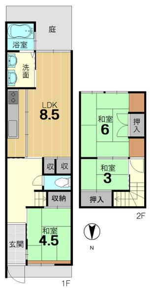 Sunny two-story house near Keifuku Myoshinji Station (1-minute walk) Floor Plan: 4 bedroom ...