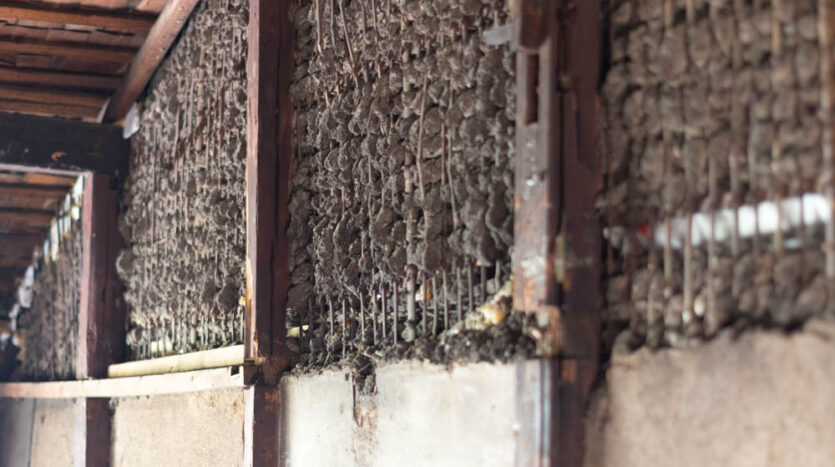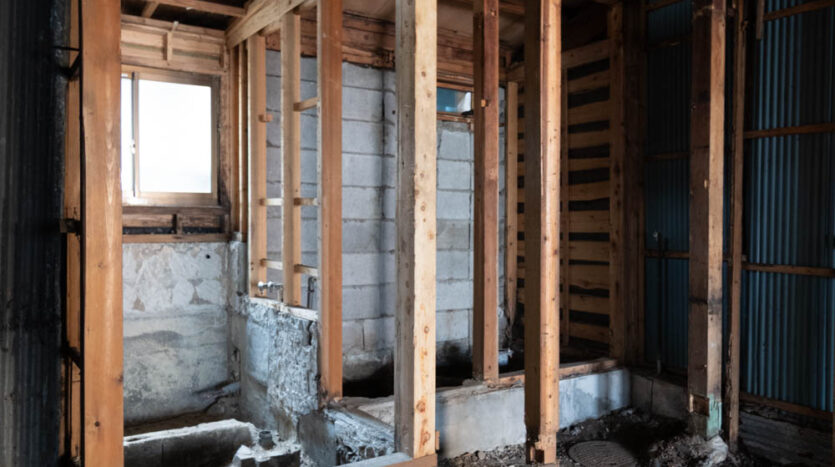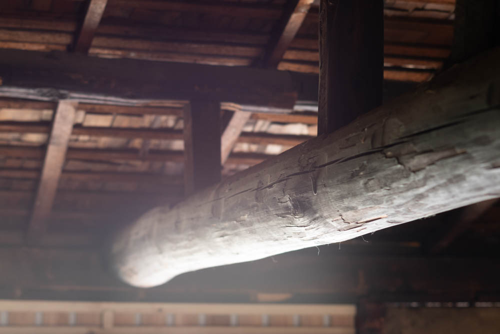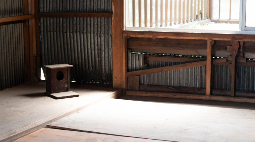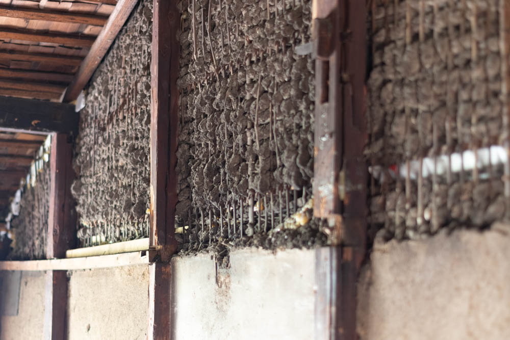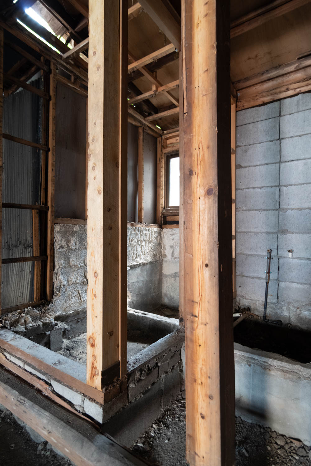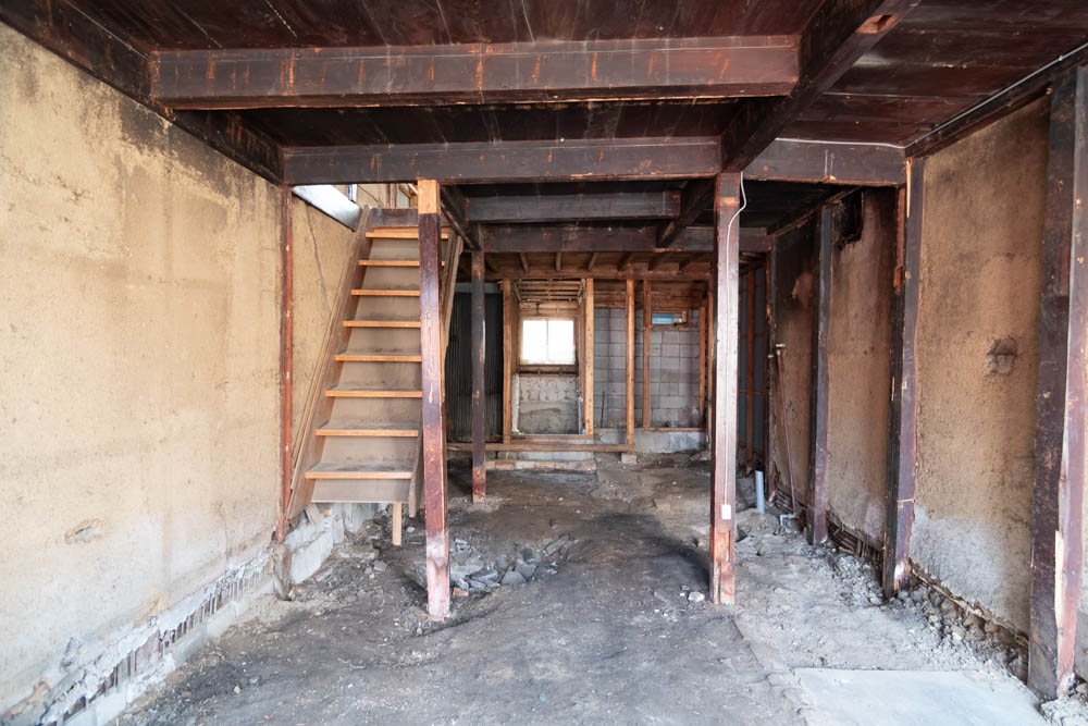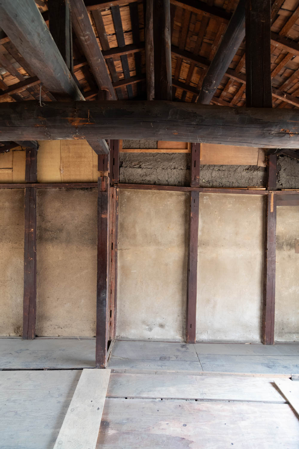 Inside, it has been fully stripped back, ready for a new owner to renovate and bring their vision to life. Original elements like earthen walls and wooden beams remain, telling the story of its long history.