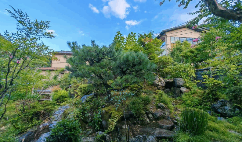 The home offers a serene harmony between refined Japanese architecture and a beautifully landscaped garden—creating a peaceful retreat where you can truly experience the essence of Kyoto.