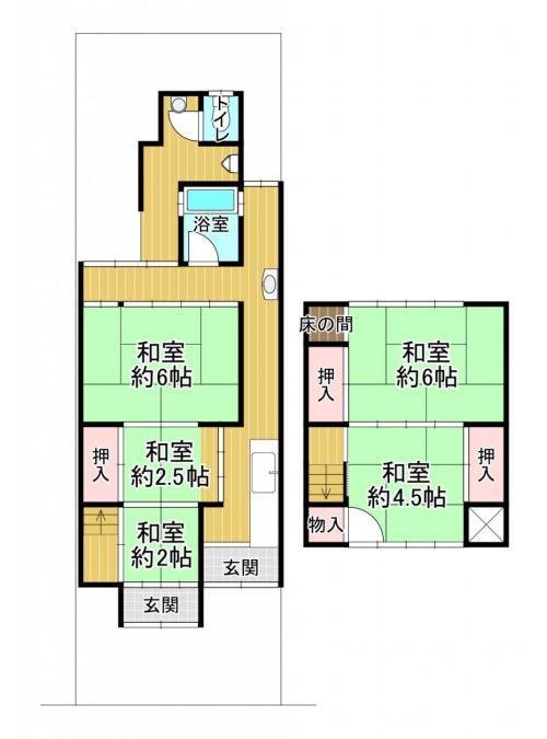 Two-story Non-renovated Kyo-Machiya house in a quiet residential area near Hankyu Katsura Station (6-minute walk) Floor Plan: 7 bedrooms + dining kitchen + gard ...