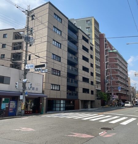 This high-end apartment building rises next to the Kamo River.This 5-story apartment build ...
