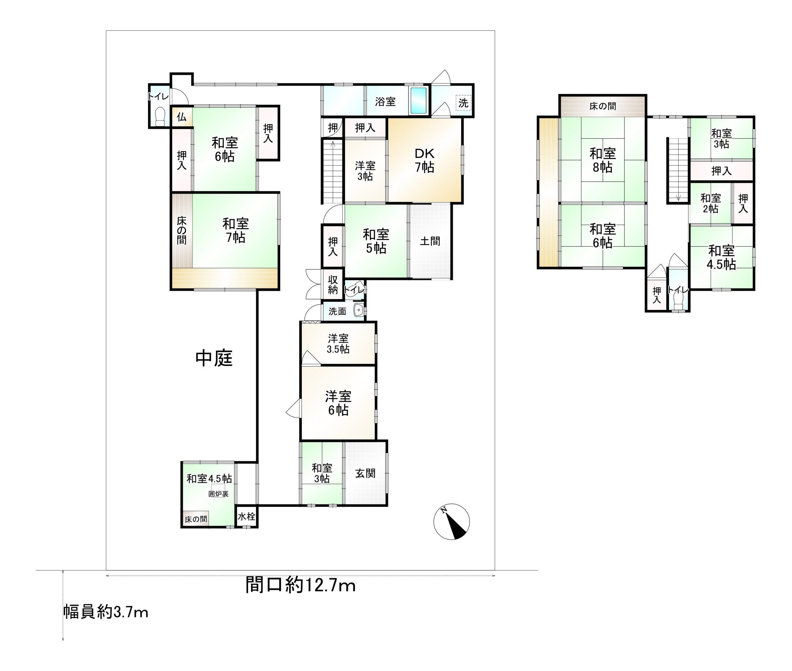 Two-Story Residence with Courtyard in Yamashina Ward, Kyoto Location: Hinooka Ebisudani-cho, Yamashina Ward, Kyoto CityLayout: 7 bedrooms + dining kitchen