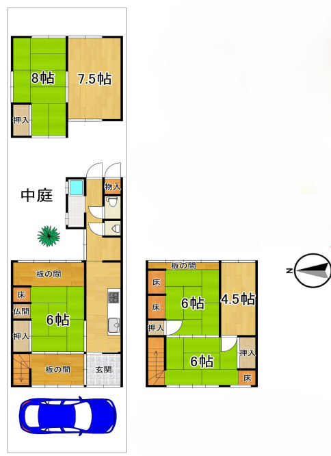 A non-renovated Kyo-Machiya (5 Japanese-style rooms and 2 storage rooms) located a 10-min ...