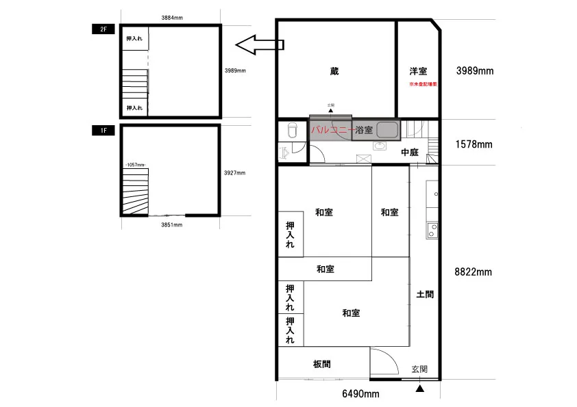 This is a non-renovated two-story Kyo-Machiya house (6 bedrooms + dining kitchen (1F) + ki ...
