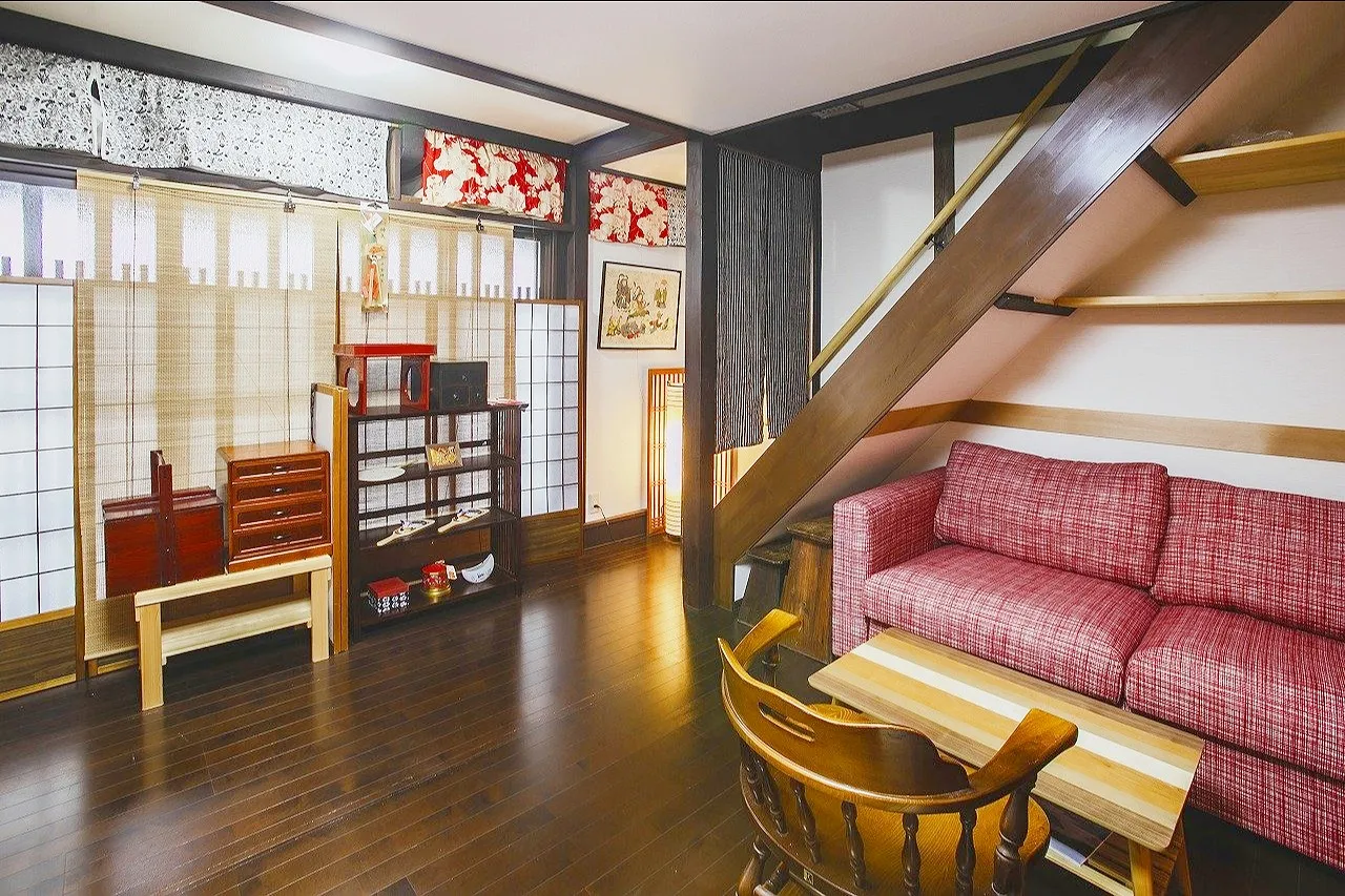 The renovated machiya house for two units, occupied by the seller on the ground floor, the ...