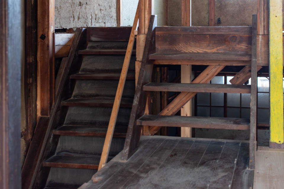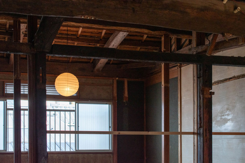 Unique details can still be found throughout the house, such as rare plaster walls with subtle glitter finishes, aged wooden pillars, and original wall textures that reflect the charm developed over many years. These elements provide an opportunity to create a one-of-a-kind renovated Kyoto townhouse.